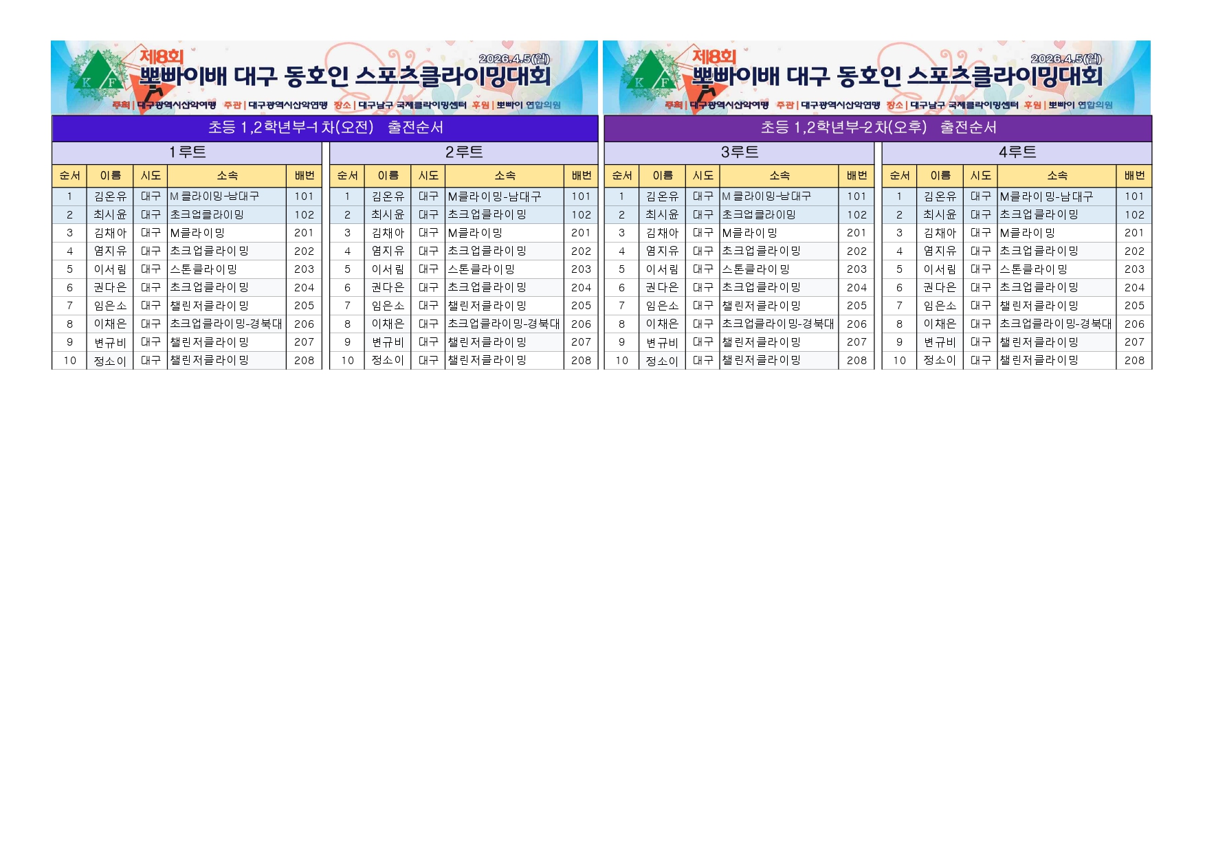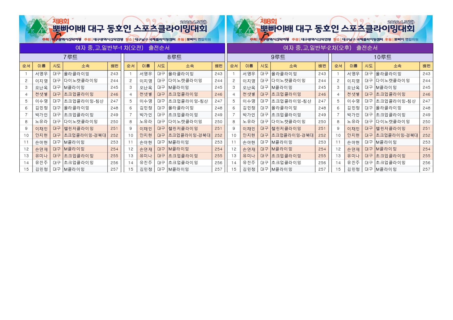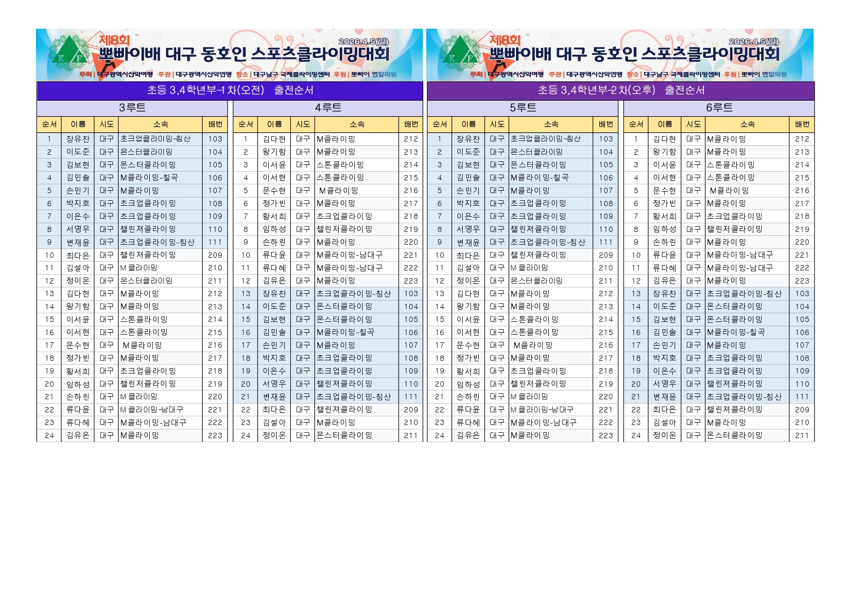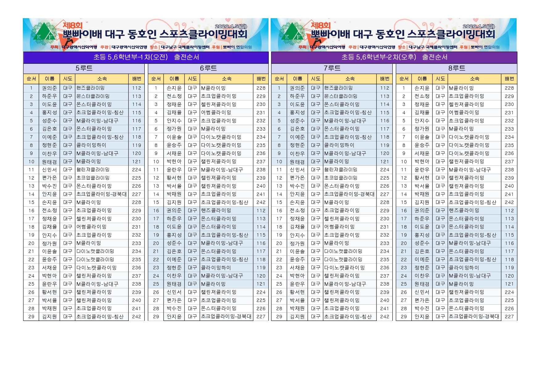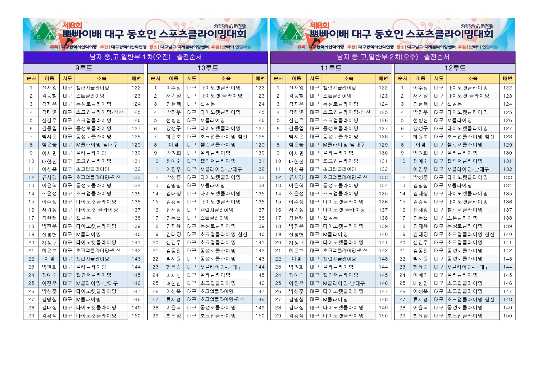 제 8회 뽀빠이배 대구 동호인 스포츠클라이밍대회 출전순서 공지