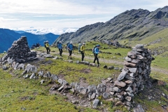 고도가 높아지면서 3천m보다 낮은 곳에서는 밀림처럼 무성했던 나무들은 온데간데없고 나지막한 초본류만 무성하다. 산허리에 걸린 구름은 발아래에 있다.